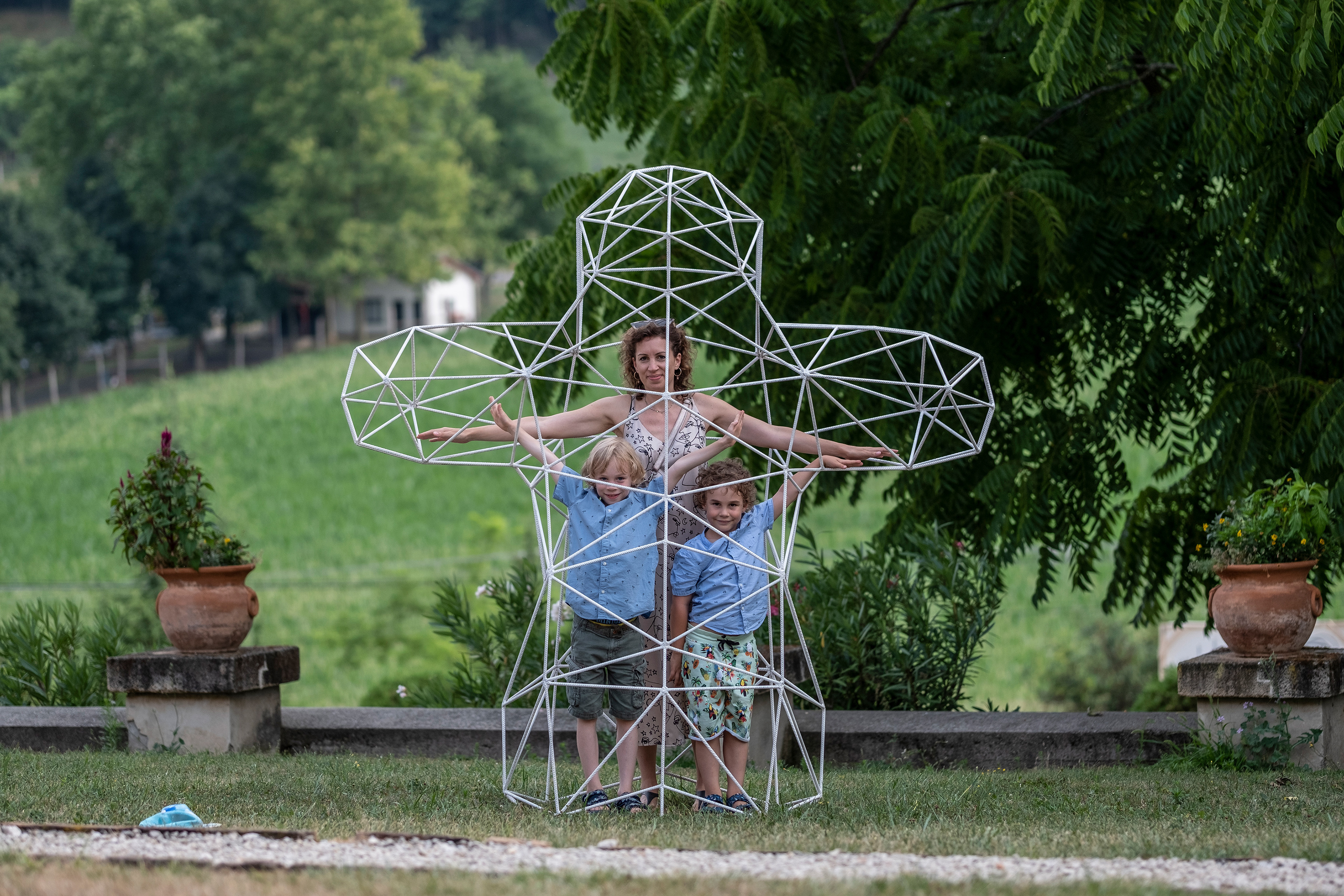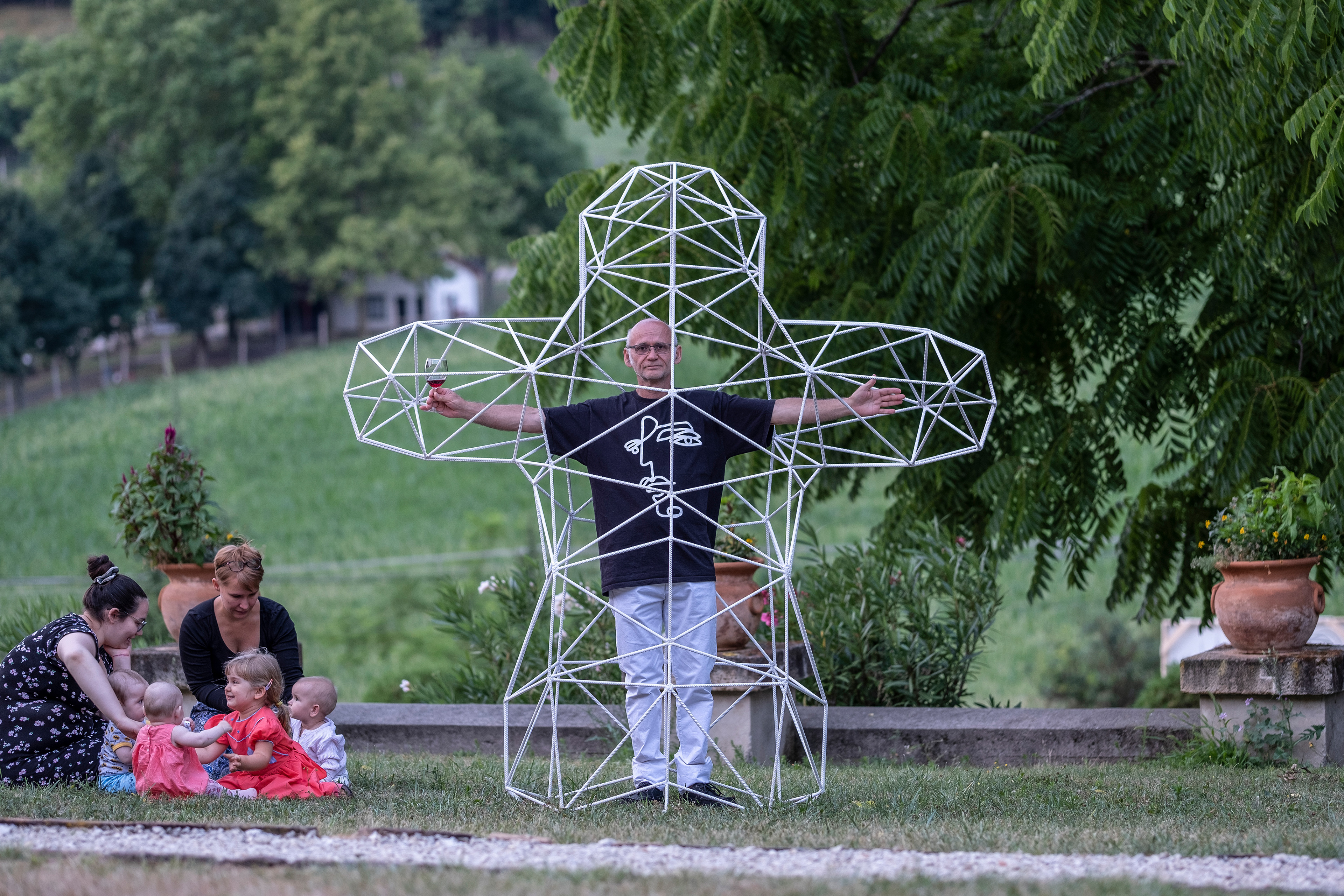 Az objekt felidézi a gyermekkori játékok rituális területfoglalásait is, a földbe karcolt, “szent” köröket. A Vitruvian Position arra emlékeztet, hogy az individualitás megőrzése nem adottság, hanem aktív, tudatos gyakorlat. A privát szféra ebben az értelemben nem magától értetődő állapot, hanem újra és újra kijelölendő, törékeny határ – egy ideiglenes tér, amelyet már a legszemélyesebb emberi kapcsolatainkban is definiálnunk kell.